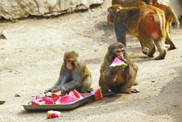 黑猩猩喝绿豆汤,吃西瓜用冰块降温