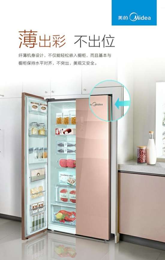 当超薄冰箱的概念尚未普及的今日,美的冰箱举起瘦身大旗,率先走在行业前列。其秉持着营造真正“整体厨房”与家装一体化的理念,在体内容积不变的情况下,实现身材臃肿到苗条动人的完美逆袭,打破冰箱传统的臃肿形象,开启冰箱“薄”时代。