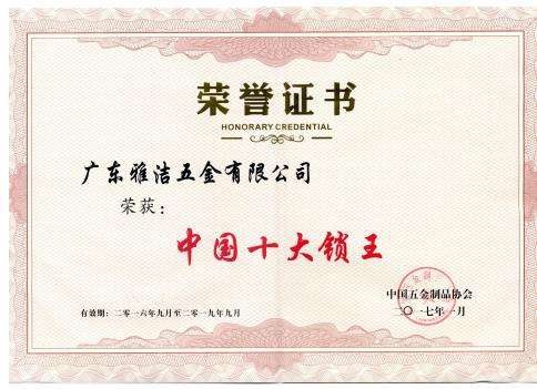 雅洁五金凭创新技术再登中国十大锁王宝座