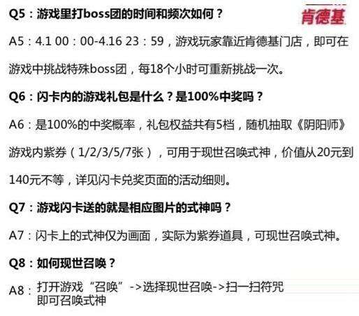 闪卡:一张有阴阳师式神图鉴的卡,包含现世召唤符咒(100%中奖,随机1、2、3、5、7张)