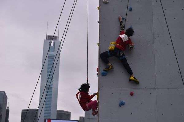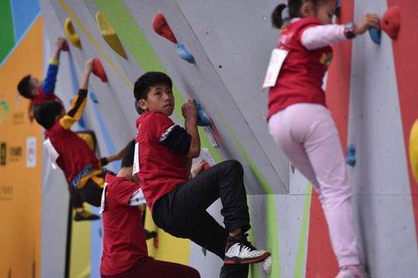 启动仪式后,我们采访了中国登山协会青少年委员会秘书长曹荣武,曹秘书长说,2017年攀岩希望之星活动在全国选出了100家承办单位,每个承办单位举办两到三场比赛,全年有200多场攀岩比赛,赛事规模与以往大致持平,但赛事质量会比往年提高很多。而且,今年比赛新鲜亮点在于加入业余比赛的等级评定工作,给小学员颁发业余等级证书。对于未来攀岩运动的群众基础曹秘书长充满信心,他表示,目前在攀岩的群体中青少年占到总体的60%-70%,在青少年攀岩人群中最后约有10%走上专业道路,世界冠军钟齐鑫就是从少年开始接触攀岩运动的。未来登协攀岩工作的发展规划是搭建青少年攀岩的金字塔――普及青少攀岩,培养对攀岩有兴趣的青少年,发现苗子选拔专业攀岩运动员。最后曹秘书长很实在地表示,目前攀岩的青少年基础特别好,对小孩子来说只要往上爬就充满乐趣,小孩子的天性就是玩,没有什么功利性,我们也不会灌输他们什么意志品质啊、竞争啊、乃至以后联系到升学获奖什么这些杂念。兴趣,是最好的引导者,只有孩子们有兴趣,这项运动才能更加普及发展。