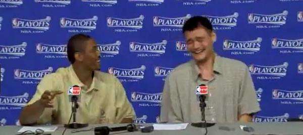 2009年,火箭在季后赛首轮以4-2淘汰开拓者,时隔12年再度进入西部半决赛,当时,阿泰斯特和姚明一同参加赛后新闻发布会,阿泰搞笑的一句话把全场逗乐,姚明更是笑得花枝乱颤!