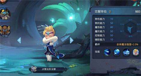阿娜最突出的就是魔伤能力达到了80,同时大招暴风雪还有冰冻控制效果。