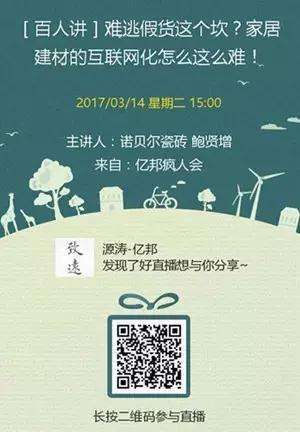 【亿邦动力网讯】日前,诺贝尔瓷砖互联网事业部负责人鲍贤增以嘉宾身份参加了亿邦动力网百人讲活动,并就行业层级分销与互联网化难点问题与受众进行了交流。