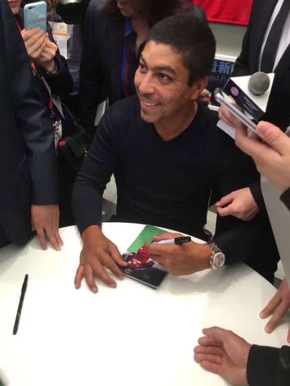 热情地为现场球迷送上了自己的签名照