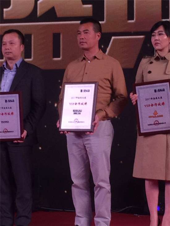 浪鲸卫浴董事长霍成基先生受邀出席了本次会议,凭借着早期居然之家集团领导莅临浪鲸卫浴国际营销总部及工厂的考察了解,以及合作后对浪鲸卫浴产品品质以及服务的认可,授予浪鲸卫浴2017年度VIP合作伙伴称誉。