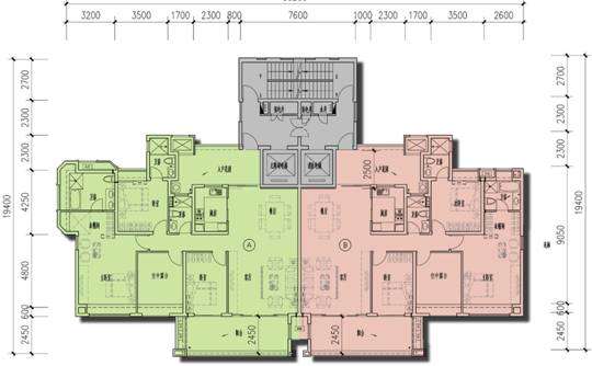 19号楼两梯两户,全景户型,建筑面积约170~175平方米