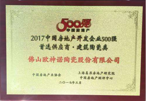 \u00A0 \u00A0从2013年开始,每年所公布的中国房地产开发企业500强建筑陶瓷类首选供应商品牌榜单上,欧神诺都毫无悬念的入选,这是行业对欧神诺品牌影响力的肯定,也是对欧神诺产品及服务品质的认可。