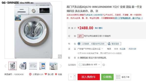 推荐产品:西门子XQG70-WM10N0600W滚筒洗衣机【点击购买】