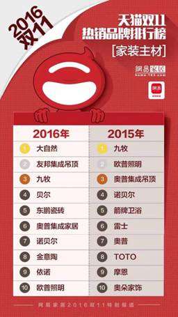 2016年大自然双十一成交额位居天猫“家装主材”第一位