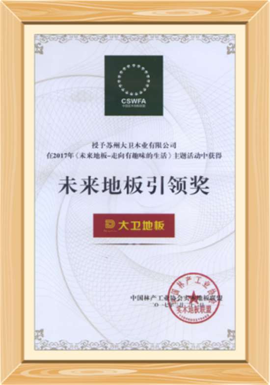 3月22日,“未来地板——走向有趣味的生活”发布会在第十九届中国国际地面材料及铺装技术展览会盛大开幕。本次活动由中国林产工业协会实木地板联盟主办,大卫市场总监陈乐新出席此次活动,让国内外与会者感受大卫产品魅力,并获颁“未来地板引领奖”。
