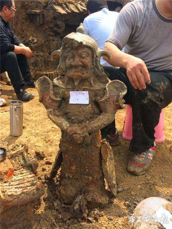 华西都市报-封面新闻讯(记者唐金龙摄影报道)3月30日中午1点过,随着两个陶武士佣的出土,广汉西外乡建筑工地宋女墓抢救性考古发掘工作器物发掘暂告段落,紧接着广汉文管所将对古墓周边作进一步查探,看是否还有古墓的存在。
