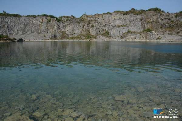 矿坑废弃后,雨水逐渐积累到矿坑内,汇成了一汪碧水,让人心旷神怡。