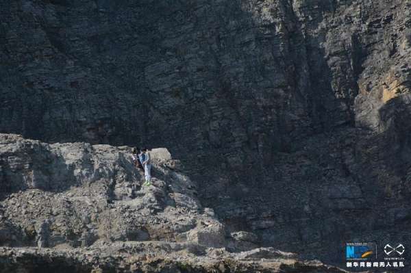 原有的碎石企业撤离后,当地政府就地利用,将废弃矿坑打造成矿山遗址公园。图为无人机视角下,矿坑绝壁如同展翅翱翔的雄鹰。