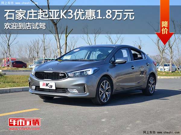 【网上车市\u00A0石家庄站讯】编辑从石家庄东风悦达起亚4S店了解到,起亚K3现车销售,颜色可选,目前购车部分车型可优惠1.8万元,感兴趣的朋友可以到店咨询购买!详情见下表: