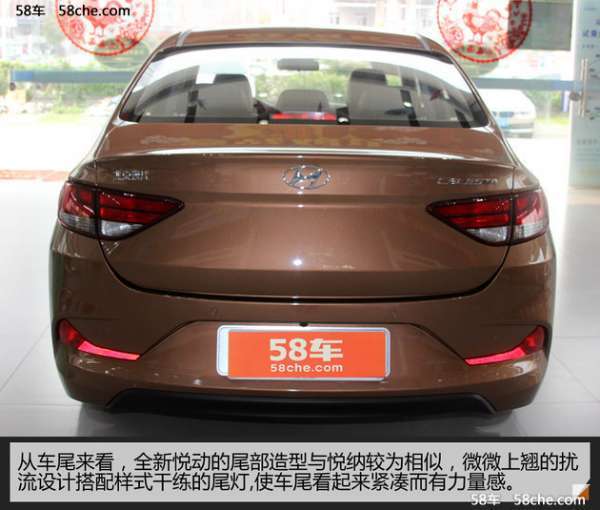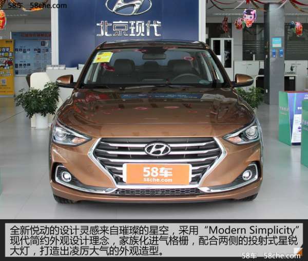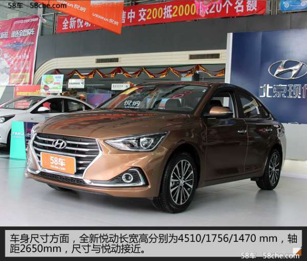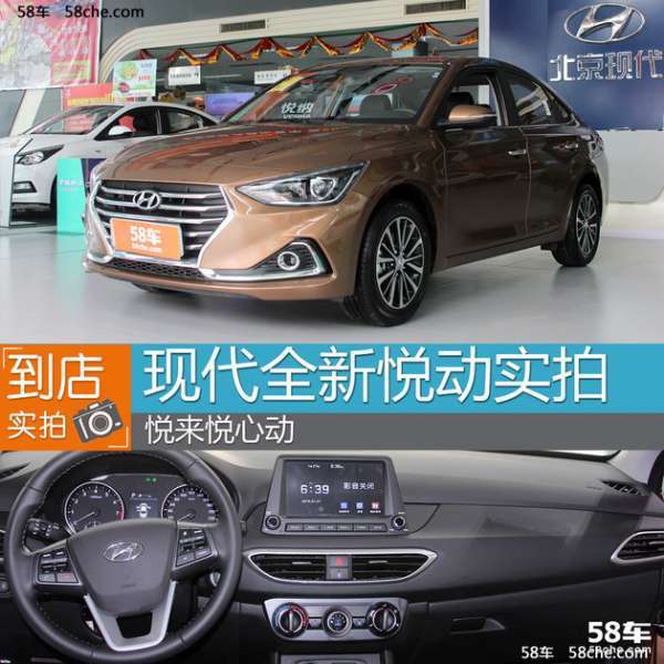 [58车·武汉实拍·原创]\u00A0从悦动到全新悦动,这是北京现代历经九年的一次蜕变,北京现代新一代中级车全新悦动共发布5款1.6L排量车型,,共6种外观颜色,同时提供黑色、米色、香槟金色3种内饰色彩搭配方案,售价7.99万-11.59万元。外观方面,全新悦动的设计灵感来自璀璨广袤的星空,采用“Modern Simplicity”现代简约外观设计理念,通过倾瀑星云的视觉效果,配合两侧的投射式星锐大灯以及两条笔直的LED日间行车灯带,打造出富有现代品质感又凌厉大气的外观造型。从车内的表现,更能看的出全新悦动作为中国家庭设计的专属家轿,更加注重时尚性及实用性,内饰则采用“Wide Sphere”典雅大气的设计理念,以中央出风口为中心的水平横向内饰布局,搭配同级独有的8英寸中控触屏,它集成了Carplay&Carlife智能手机互联系统,成为了当下家庭轿车不可或缺的时尚元素,让更多的家庭用户得以享受便利舒适、倍感体贴的汽车生活。全新悦动通过布局改善,实现最大化空间利用率,为家人营造出更舒适、人性化的乘坐感,同级最大的490L后备箱容积,提供了更宽敞的储物空间。动力配置上,全新悦动采用了最可靠耐用的1.6L自然吸气发动机,分别匹配6速手动和第二代6速手自一体变速箱。北京现代在步入第十五年时,推出更适合中国家庭的专属车型全新悦动,为中国新时代的年轻家庭带来更多的呵护和贴心。 全新悦动上市价格表 车型 售价(万元) 2017款 悦动 1.6L 手动悦目版GL 7.99 2017款 悦动 1.6L 手动悦值版GLS 9.19 2017款 悦动 1.6L 手动悦心版DLX 10.19 2017款 悦动 1.6L 自动悦值版GLS 10.29 2017款 悦动 1.6L 自动悦心版DLX 11.59 \u00A058车 www.58che.com \u00A0感谢湖北欣瑞汽车销售服务有限公司提供车辆进行实拍 [商家地址]武汉市江汉区兴业路2号大润发超市(杨汊湖店)对面 [联系电话] 027-59516808 ●外观尺寸:家族化设计 凌厉大气