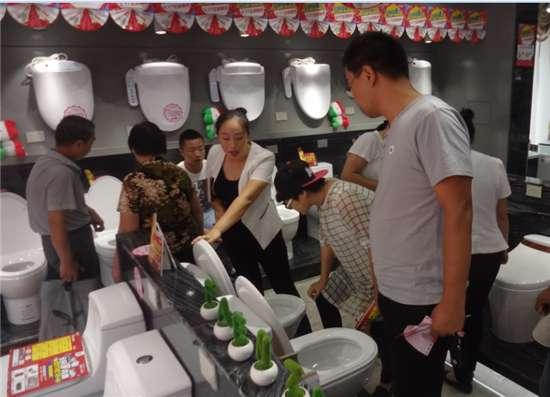 法恩莎卫浴的销售精英们为客户细心讲解,客户也纷纷爽快下单