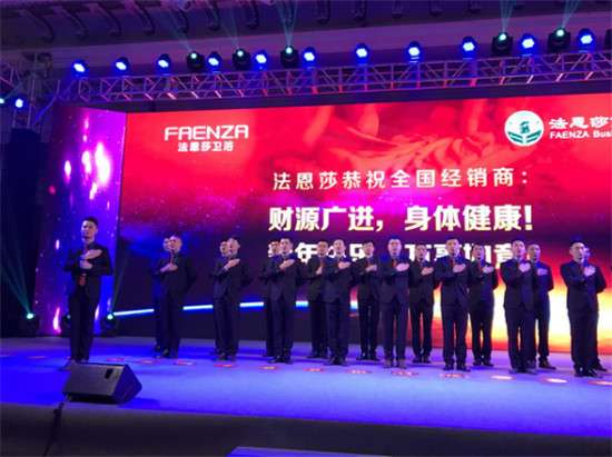 ▲法恩莎卫浴销售部团队展示环节,常怀感恩之心,感恩过去一年全体经销商们的付出与努力。
