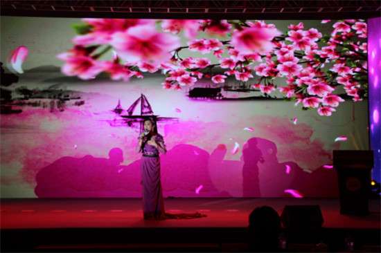 ▲下午的开场秀别出心裁。美女唱美曲,一首优美的《龙船调》将全体来宾的热情彻底点燃!