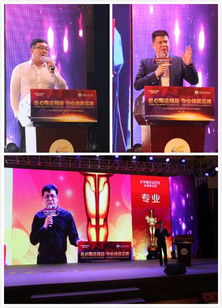 ▲2016年是法恩莎卫浴成立18周年,晚会现场乐华集团董事总经理谢总、乐华集团副总经理霍总、法恩莎卫浴事业部总经理方总等同仁在现场为品牌庆祝、祝福。这份感动,将会常留心中。