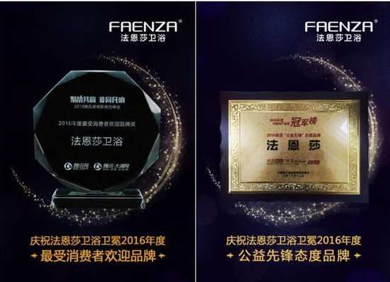 法恩莎卫浴能荣获如此诸多殊荣都离不开其坚实的品质与优秀的服务,这一年的荣誉是下一年的激励,我们相信法恩莎卫浴在未来会越来越好,也会获得更多更好的荣誉,成为行业内永远闪耀的明星,成为客户心中最信赖最喜欢的品牌。