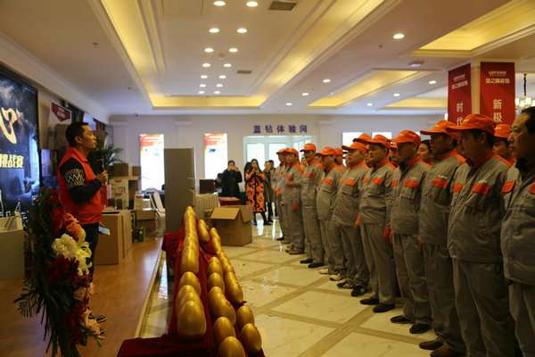 启动仪式上,副总经理李君尧先生对大赛进行工程团队动员并向大赛吹响号角。监理、项目经理、工长及工人代表纷纷上台表态,严格要求自己,赛出风格,赛出水平。后工程部经理杨军先生带领工程团队人员集体宣誓。