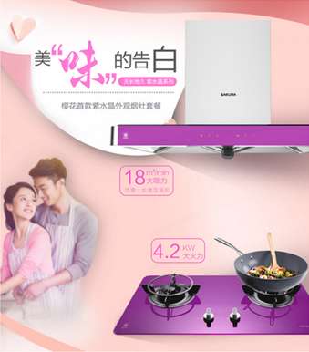 紫水晶烟灶套装配合樱花季的时间点推出,就像美好浪漫的爱情和美满幸福的家庭不会常有一样,此次系列套装也是限量发售。樱花希望高品质的产品带来更轻松的生活,而持续用心的服务能真正留住客户的心。
