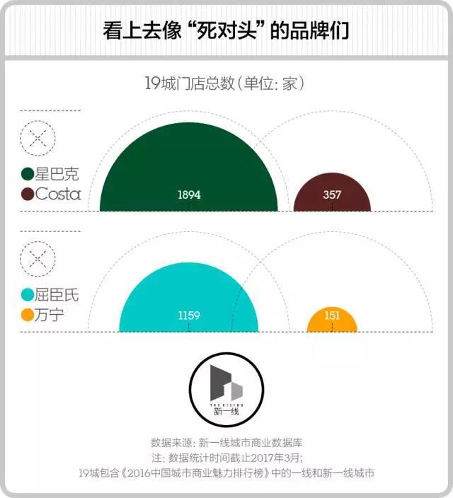 看到这里你是不是会想要提醒新一酱漏掉了两对重要的对手品牌呢?恩,星巴克vsCOSTA,以及屈臣氏vs万宁是吧?