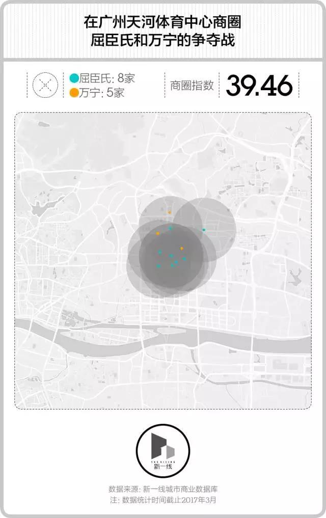 比如以下3个商圈组,就是三对死对头品牌分别最强势争夺的区域。