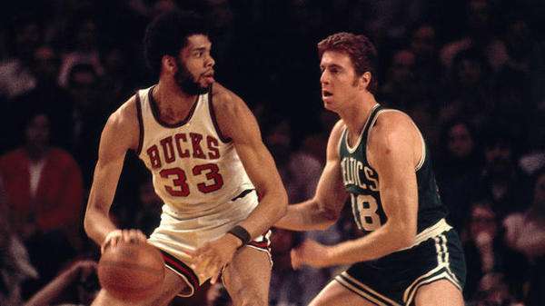 贾巴尔在1971-1972赛季场均砍下35分16.6篮板4.6助攻,投篮命中率高达57.4%,这一年他击败张伯伦和杰里-韦斯特获得常规赛MVP。