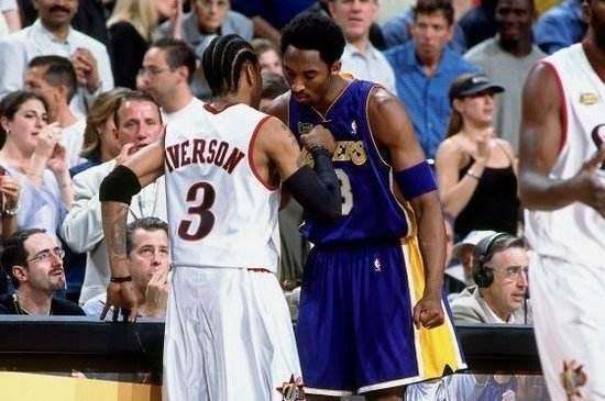 科比和艾弗森都是96黄金一代的标杆,同时他们还是一对死对头,他们的个性都非常高傲非同寻常,他们的内心都非常好胜,科比出生于费城,但是费城之子的名号一直处于艾弗森,虽然两人的生涯轨迹不同,艾弗森没有冠军科比5个冠军,但是艾弗森一旦疯狂科比也拿他毫无办法。