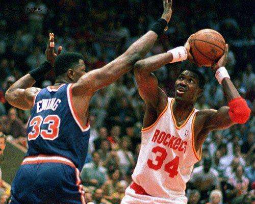 奥拉朱旺是NBA历史上脚步最华丽的巨星,奥尼尔就曾在采访时表示,奥拉朱旺是自己唯一打不过的球员,可见奥拉朱旺的实力有多强,作为一名中锋奥拉朱旺的假动作幅度非常大,通常一个假动作跨步就让让对手留在原地,然后自己拉回来上篮得手。