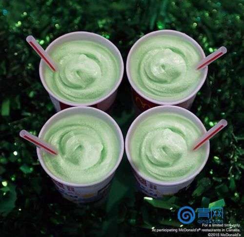 欧美人特别特别好喝奶昔,不管是哪家快餐店,饮品热销榜上肯定是可乐和奶昔在头两把交椅,也难怪麦当劳会在奶昔上大动脑筋。shamrock shake,以前看书总看到“苜蓿”,不知道具体是什么植物,其实这里就是一种可以食用的三叶草。加入奶昔缓解了甜腻的口感,多了一丝清香。重点是颜色还十分少女梦幻,这不就是2017年流行的潘通绿吗?!