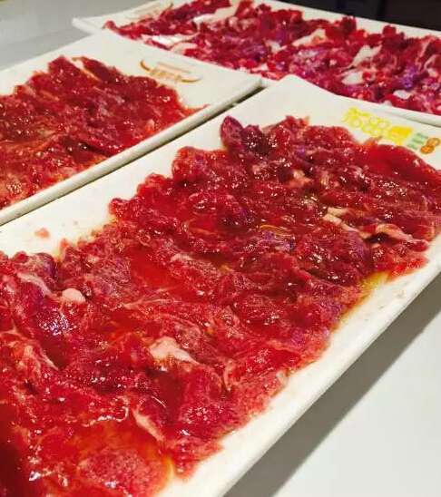 ??这家店大概是银泰城-1楼人气最旺的一家,一家清新温暖向的潮汕牛肉火锅店,圈儿每次来都能看到门口坐着一群吃货在等位,开放式的透明厨房内挂着新鲜的牛肉块,窗内的小鲜肉现场片肉,很养眼。
