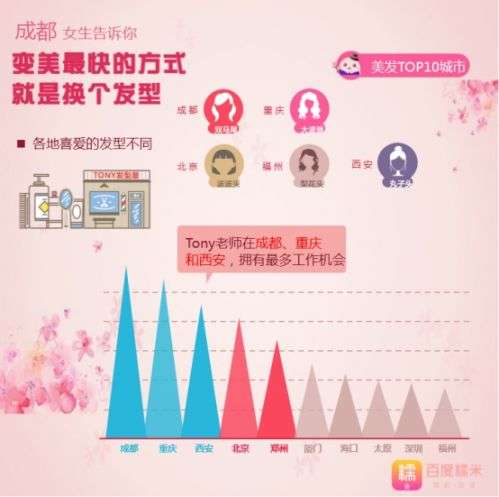 爱美是女人的天性,但世人对美的理解和偏爱都各不一样。数据显示,成都强势霸占美发品类榜首,重庆、西安、北京紧跟其后。看来辣妹子除了爱吃辣,最爱弄头发。毕竟换个发型可能会改变整个人的气质。