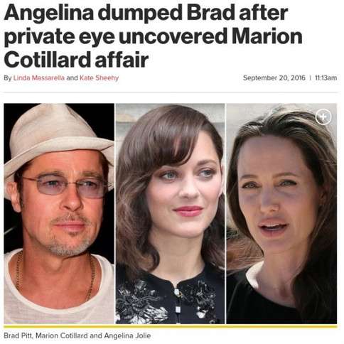 朱莉雇佣私家侦探 皮特疑出轨玛丽昂·歌迪亚 2016年9月20日晚间,安吉丽娜·朱莉和布拉德·皮特离婚的消息震动全球。据美国媒体Page Six称,安吉丽娜·朱莉雇佣了一名私家侦探,最终发现皮特背叛了自己,这成为压垮这段婚姻的最后一根稻草 2016-09-21 08:55:22