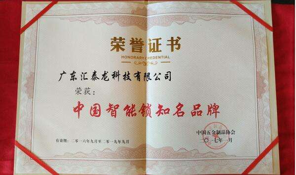 “中国十大锁王”、“中国智能锁知名品牌”的评选,历经层层选拔,要求严格,考核质量指标和市场占有率指标,产品质量要处于国内领先地位,市场占有率、品牌知名度、产品开发能力等居锁具行业前列,能获选“中国十大锁王”和“中国智能锁知名品牌”,是对汇泰龙在锁具行业的影响力、锁具产品的综合实力的绝对认可。