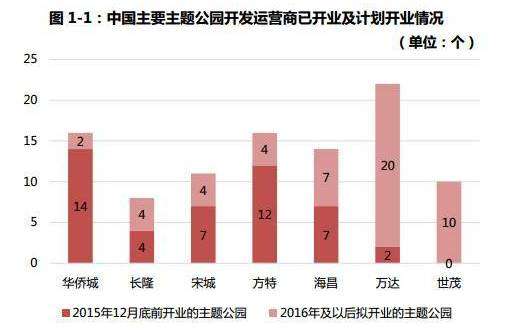 主题乐园市场风起云涌,特别是本土投资运营商不甘示弱。除了早已涉足主题乐园的传统品牌商如华侨城、海昌外,自2013年起,部分房企也开始涉足主题乐园领域。据不完全统计,万达、世茂、碧桂园、海尔等房企已经开始布局主题乐园。