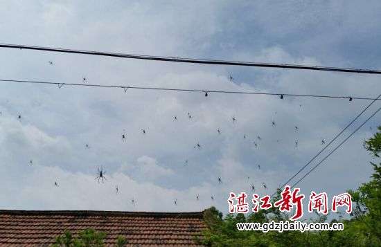 \u00A0\u00A0\u00A0\u00A0湛江新闻网讯:5月24日上午10多钟,笔者经过坡头区龙头镇高山垌村时,发现位于该村道路附近的电线杆和树木之间,数以千计的、巨大的蜘蛛挂满在一张巨大的蜘蛛网上,宛如一个巨大的“蜘蛛王国”,那场面颇为震撼,令人毛骨悚然,不寒而栗。