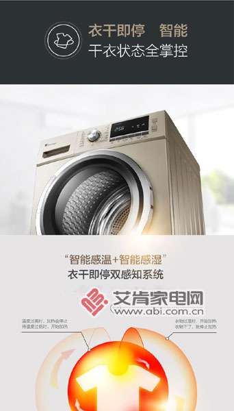 小天鹅TH80-H002G带有“智能感温+智能感湿”双感知系统,精准控制衣物烘干程度,通过干衣机筒口部位设置湿度传感器,利用电脑板内置的智能化新品去采集湿度传感器检测的数据并精确感知衣物的干度,真正实现衣干即停,这样既能保护衣物不至于因为干后温度过热受损,又达到了节能、省时的效果。