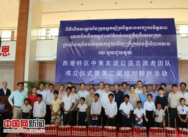 西港特区公司成立中柬友谊公益志愿者团队,开展结对帮扶活动。图片由红豆集团提供。