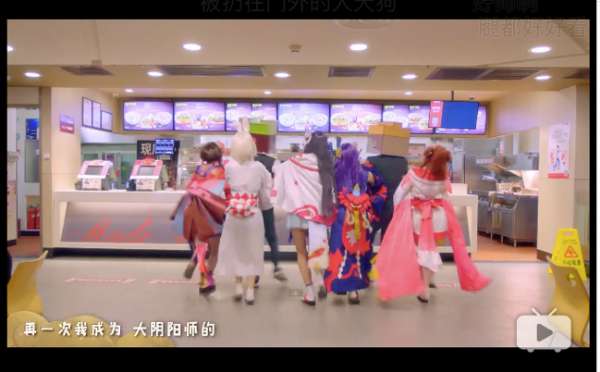 而整个视频中,阴阳师中人物的设置、精良的动漫服饰制作、轻快风趣的舞蹈设计、肯德基门店的场景运用?????各种元素的整合,无不切中了二次元的应援粉丝、阴阳师的重度游戏爱好者、爱好肯德基的年轻群体以及其他泛二次元用户的嗨点。
