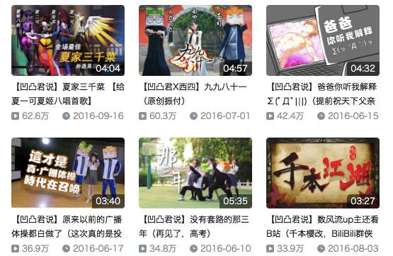 (《凹凸君说》在B站上的部分节目)