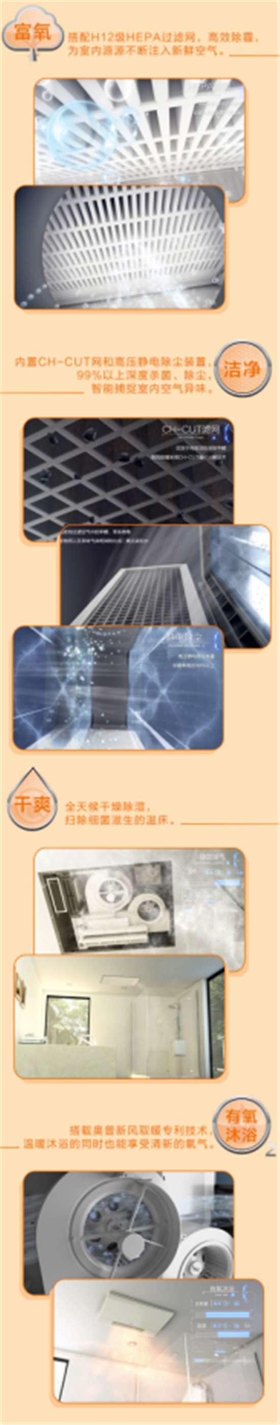 其次,新风取暖2代采用了奥普独创的全域复试循环加热技术,不仅能减少噪音,还可以增加动能,使升温更快,同时在升温之后保证浴室内空气始终维持在恒定温度,确保用户沐浴期间无温差变化导致的体感差异。