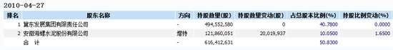 2010年1月至4月,海螺水泥又连续买入6062.5万股冀东水泥,持股数量达到1.22亿股,持股比例达到10.05%,买入区间在14.29-16.1元/股。当时,冀东水泥在2010年1月和4月先后遭遇了两次大幅下跌,这也给海螺水泥提供了买入的绝佳时机。而在海螺水泥大举增持的同时,不少基金也开始重仓介入冀东水泥。