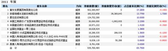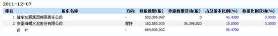 此后,海螺水泥继续增持冀东水泥。2011年年报显示,海螺水泥进一步增持冀东水泥至1.86亿股,不过,在此期间,菱石投资以14.21元/股的增发价格认购全部1.35亿股冀东水泥增发股份,斥资19.14亿元成为持股冀东10%的第三大股东,海螺水泥的持股比例被稀释至13.77%。