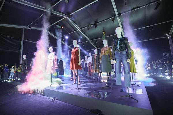 三彩选用“真人模特+全息模特+橱窗模特”的新颖阵容,模糊了真与假的界限,打破了虚与实的壁垒。全场采用全息投影技术,灯光由矩阵LED灯光和四周的发光灯管共同建筑,促成了科技与时尚的联合,从而达到艺术上的全新突破。无限的色彩组合出无限的变化,带给观众一次又一次的惊喜。