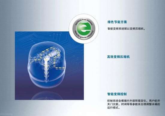 西门子KA92DS5ETI对开门冰箱采用的是绿色节能环保方案,智能变频系统配以变频压缩机。该控制系统能够根据用户开关门次数、时间等内外部参数变化来合理调整冰箱运行模式。同时冷冻和冷藏采用并联双循环系统,各自独立使用风道控温更精准。