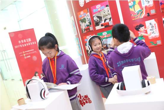 “小书迷王国2017年儿童书单发布会””上,儿童代表现场体验有声故事