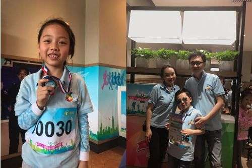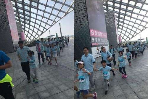 作为马拉松线下文化观展内容的一部分,肯德基和咕咚还邀请当地的小学生和家长一起,参与2.10975公里的迷你半程马拉松“亲子跑”。孩子们不但可以在主题餐厅看到奖牌、跑步达人事迹,还可以亲身体验“全程参赛”的过程。